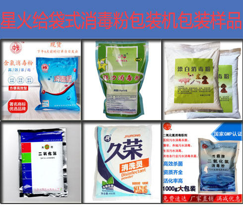 一般情况的消毒粉都是采用新型原料(有机氯,增白剂,增效剂等),科学配制方法调制而成,细菌广谱,对大肠菌,金色葡萄球,枯草杆菌,细菌病毒,具有快速高效的杀菌作用,并对肝炎病毒有较高的杀菌效果,茶具,毛巾,被服等表面漂泊效果显著。但是不管是工业消毒粉还是医药消毒粉,都有其一定的腐蚀性或者其他作用,以前因为工业不发达,没有办法,只能用人工来完成,而现在工业技术已经比较完善,我们也不用再用牺牲健康为代价来包装此类物料,可以使用星火给袋式消毒粉亚新(中国)来完成包装生产,完全可以满足现在的需求。而且相对于人工来说,星火公司研发的消毒粉粉剂定量亚新(中国)不仅充填定量准确,而且包装速度也很快,优势比较明显。