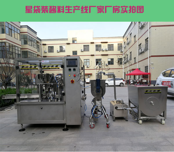 目前,随着时代的不断发展,全自动化袋装酱料生产线设备已经成为各大企业的新宠,而且日常生活中,袋装酱料也是随处可见的,我们平时吃火锅时的火锅底料,吃烧烤时的烧烤酱,吃薯条时的番茄酱,辣椒酱,牛肉酱,香菇酱等等,都是用过这款袋装酱料生产线最后进行包装生产的,这款全自动化袋装酱料生产线设备是我们星火公司面对市场袋装酱料的需求越来越大,精心研制出的一款省时,省力,高产的一款袋装酱料生产线,这款设备是我们公司引进国外先进技术,结合国内一些专利生产的,目前这款设备已经被广泛应用到各大企业中,那么下边就让我来给大家介绍一下这款袋装酱料生产线的优势和特点,相信您听了以后一定会对这款设备有了更全新的认知。