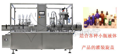护理液灌装机适合各种材质各种形状各种规格小瓶液体产品的灌装,如圆形、扁形、异形瓶或者喷头的灌装旋(轧)盖。全自动隐形眼镜护理液灌装机多适用于护理液、清洗液、滴眼液、滴耳液、喷鼻剂、小瓶爽肤水、风油精、开塞露、口服液、酵素眼药水、滴眼液、气雾剂、药品喷雾剂、糖浆、酒剂等各种瓶装物料液体产品,在食品、日化、医药、化工等行业的使用居多。
