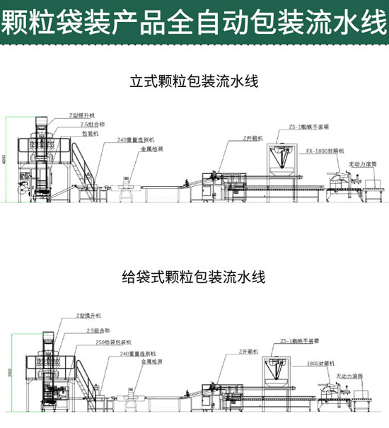 最后给大家提供两套颗粒袋装包装生产线。颗粒袋装包装可包装:坚果、燕麦、肥料、种子、中药饮片、枸杞、杂粮等中药材颗粒等。