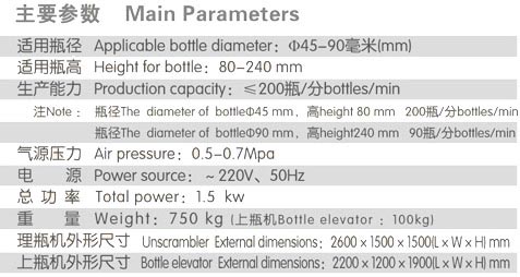 核心配备1:LP-200型全自动理瓶机:能将杂乱无章的空瓶安全、快捷、整齐有序地排列到输送架上,彻底解决了人工放瓶难、强度大、速度慢的困扰。