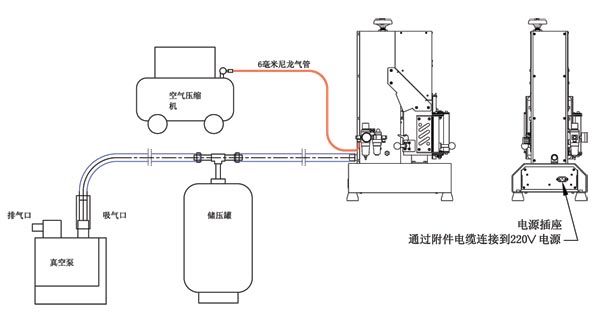 压缩空气:泵流量要求0.11 立方每分钟以上,0.7 兆帕(7 公斤每平方厘米);