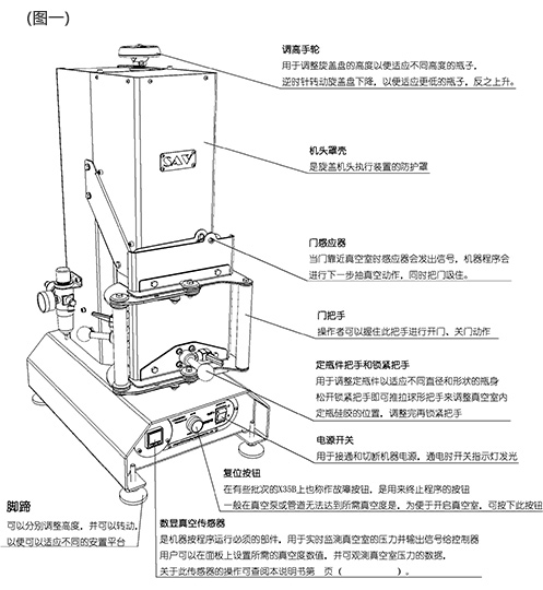 X35B3 型桌面型真空旋盖机,采用应用于旋盖机及封罐机的开启式全密封真空室技术,属半自动机型,人工配盖,人工进出瓶,手动关闭真空室。机器内部采用气动执行装置驱动旋盖,采用精确控制执行件气压实现扭矩控制,属于非摩擦式扭力限制使用寿命更长;由于采用可靠的全密封技术,配置小功率真空泵即可达到理想的真空度,真空度可按需设定。X35 系列机型具有经济性、广泛适用性、易用性、可靠性和移动性,适合小型生产车间、特殊规格用途、以及实验室使用。