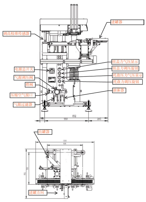 全自动酱料真空旋盖机机器各部位说明: